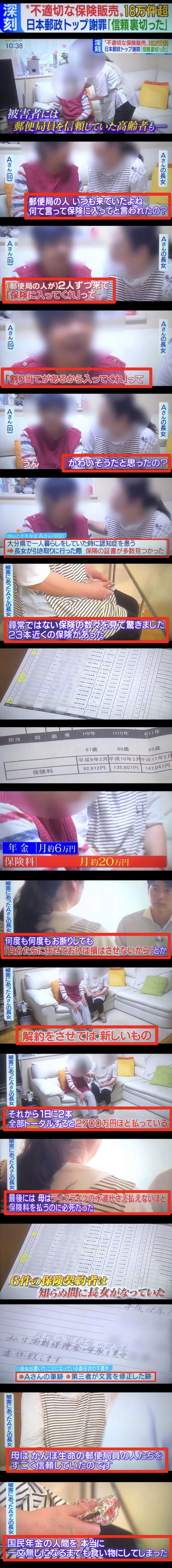 番組は2018年4月に放送されたNHKの「クローズアップ現代+」で、今まさに問題になっているかんぽ生命保険の不適切な営業実態を取り上げた。日本郵政グループを揺るがす大スキャンダルを報じた嚆矢だった番組である。