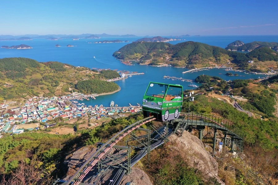 「ヨクジドモノレール」は統営市が国費など117億ウォンを投入した施設だ。 ヨクジミョン·トンハンリ旅客船船着場から海抜392mの天王山(チョンワンサン)テギ峰を結ぶ2km(片道1km)循環式軌道で構成されている。