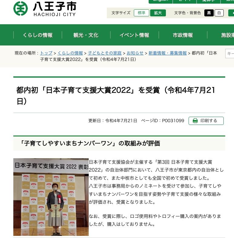 『日本子育て支援大賞』というとイメージがいい。
