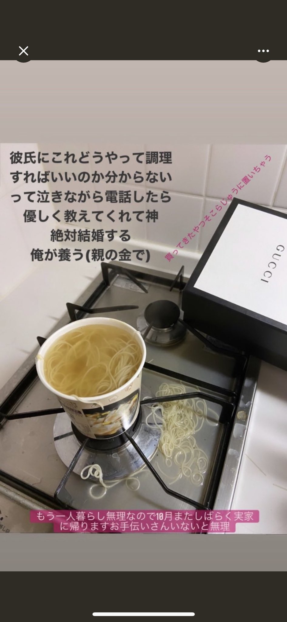 【画像】彼女さんとんでもないカップラーメンの作り方をしてしまう(チラリあり)