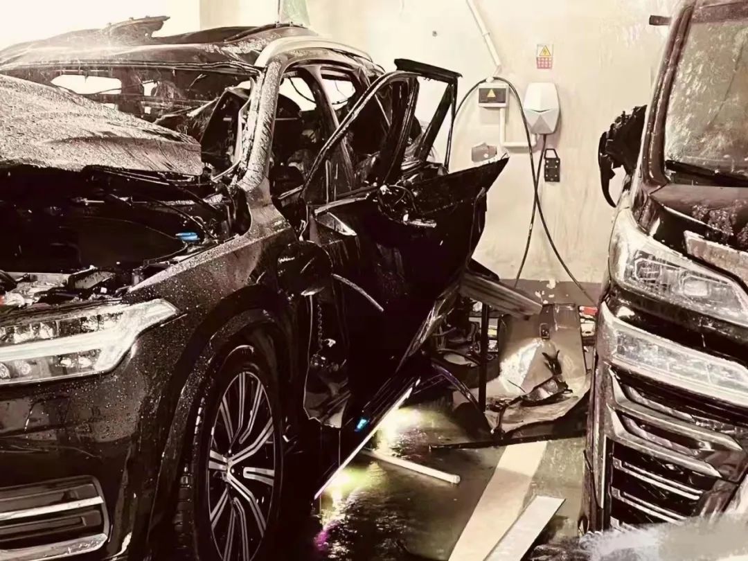 場所は南京にあるマンションの地下駐車場でした。写真を見ると、爆発した車の前後のボンネットと4枚のドアが大きく破損し、ガレージにあった他の車にも影響があります。